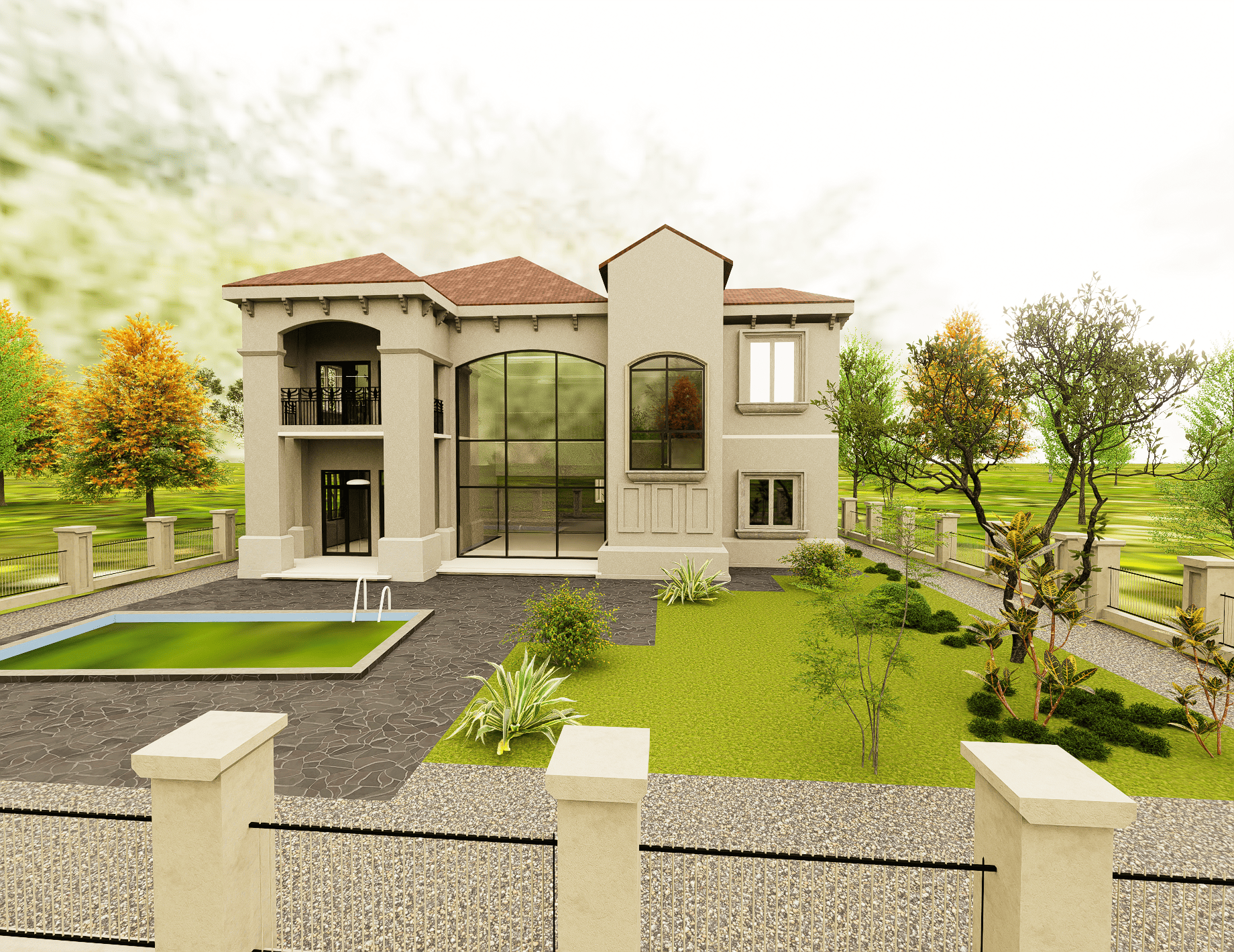 The project commenced with a thorough laser scan of the villa and its surrounding landscape. The comprehensive on-site scanning, completed in just two days, captured the entire property and generated a dense point cloud of data. Following the scanning, our team registered the data and developed a precise LOD 300 BIM model using Autodesk Revit. The modeling encompassed both floors of the villa with exact measurements, and the landscaping was also incorporated to provide a complete digital representation of the property.